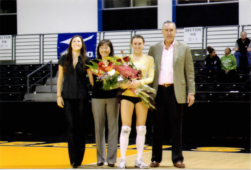 In 2009, after my daughter Nicole’s senior year, she went to Colorado Springs to try out for the National Team and she made it. The Olympic coach, Hugh McCutcheon, called and asked what I was doing. I told him I was retiring and then he asked if I had any interest in helping us and I started laughing. I told him that I was retiring because I don’t want to be in the gym six days a week anymore. He laughed and understood. He said he had called because he had invited my daughter Nicole to be with the National Team and that he wanted me to know that it was what he saw in her and not because she was my daughter. To me, that meant a lot because I knew people would say things like she made it because of me. She’s another one that when she was 14, my friends would hear other parents saying, “Which one is Debbie Green’s daughter?” and “Oh, she’s not that good.” The coach was saying that she enjoys it and is having fun. By her senior year of college she was one of the best setters, on the National Team and then played professionally in Europe. And Dana played in college all four years, started all four years, and played in Europe for one year.